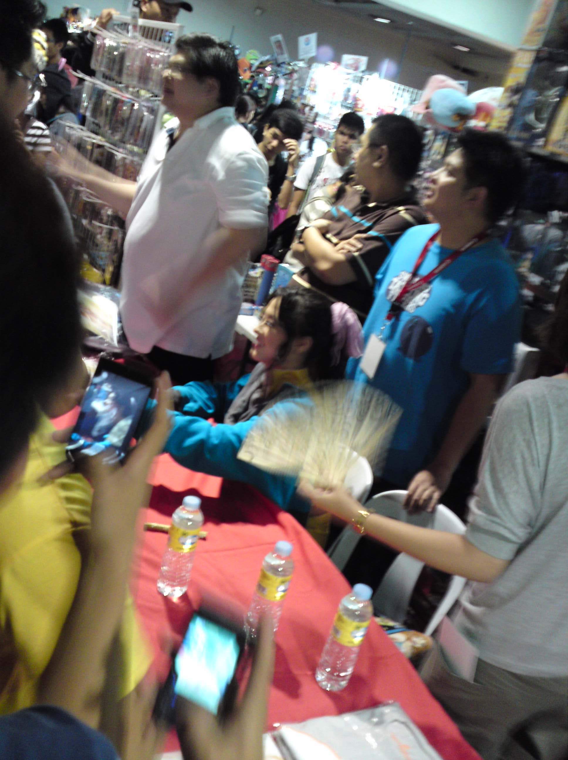 Finally the line started to move very quickly. I mean, REALLY quickly. I was at the front of the line in 5 minutes. The person in charge of the booth then told me to hand to gravure book to him and tell me his name so Jinri can sign it. I told the guy the spelling of my name (since it’s pretty hard to spell) but I don’t think he heard me. Oh, and she can’t pose for pictures. The guy told me that I’ll have to take a picture of her WHILE she’s signing it. I couldn’t even get a good picture of her in costume since she was wearing a jacket!