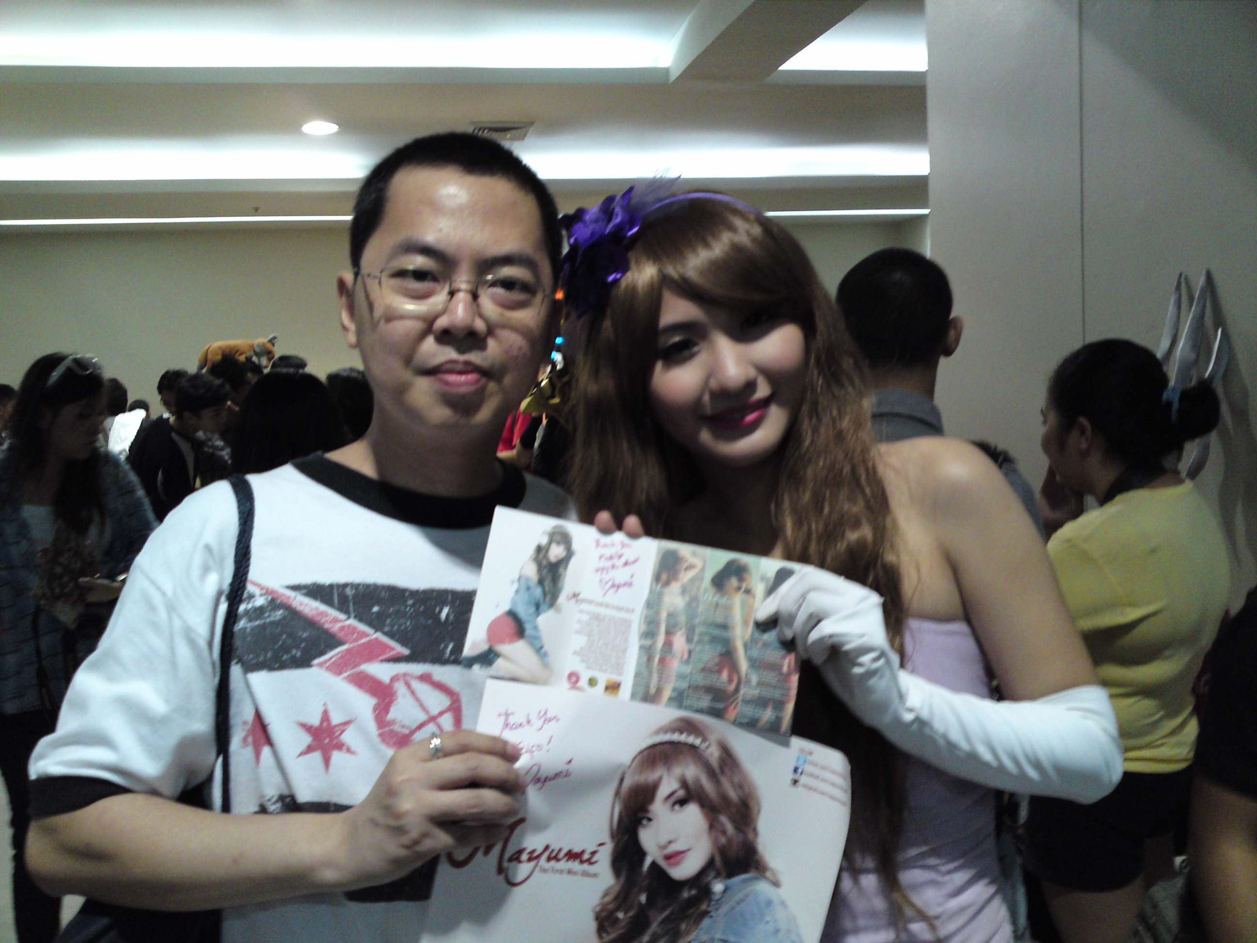 It turns out that the person was Mayumi Gomez, who’s a popular cosplayer, model and aspiring singer. She was kind of hidden from the main floor but, I have to admit, she was doing a good job in attracting attention. Mayumi will pose for pictures with people that want her picture (just like any good cosplayer). But, if you buy her CD (costs P200), she’ll give you a poster of her, as well as a button. Oh, and she’ll sign all three of them!