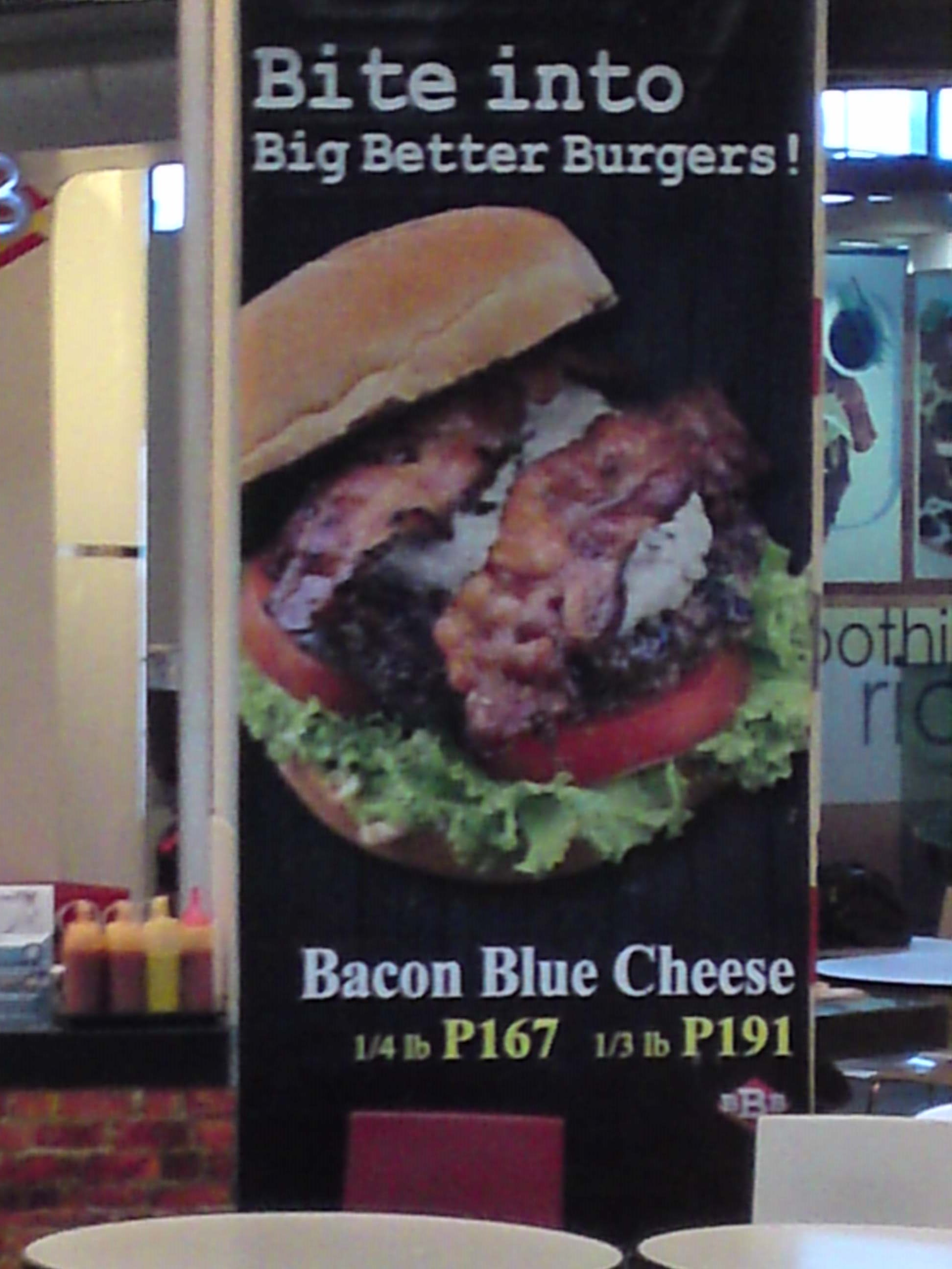 We’re smack dab in the middle of October and it’s now time for the 3rd installment of I’ll Review Anythings Burger Month! Today, I’ll be reviewing Big Better Burgers’ Bacon Blue Cheese Burger. Now, I’ve actually passed this burger stall for a couple of years actually because of, well, the location. Yes, it may seem pretty prudish of me to do so. But it kind of hard to think of a burger stall that’s set up next to a Sisig Hooray and a Kim ‘N’ Chiu would serve pretty tasty hamburgers.