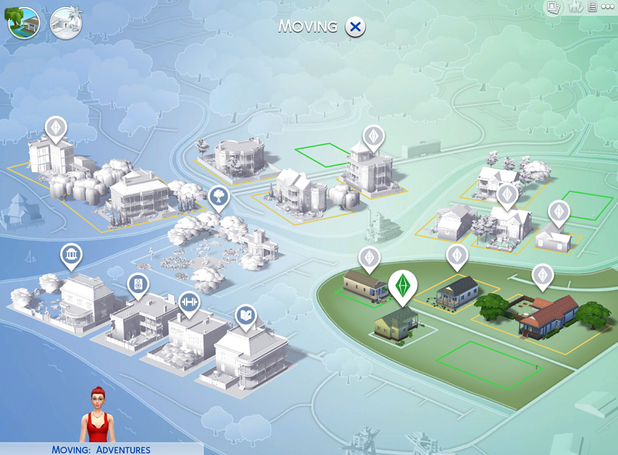 Well, I do like this new cleaned up look of the town… or towns as they actually are. I sometimes had some problems finding the residential areas in The Sims 3 since the landscapes are usually huge. I do miss the condos that were added in The Sims 3: Late Night, though. I did find moving in to be a slight headache since I don’t know how to preview the floorplan using the Sims 4. I hope Maxis updates the game and gives us the option to look into the houses before we buy them… or at least make it easy for me to figure out how to do it!