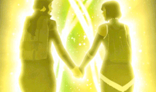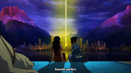 So, by the end of the entire series, after the last battle has been fought and they were celebrating Varrick and Zhu Li’s nuptuals, Asami makes the innocent comment that she wants to go on vacation. Korra jumps at the chance and says they should go on vacation together. And they do… into the Spirit World.