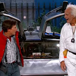 Michael J. Fox and Christopher Lloyd reprising their iconic characters in a Jimmy Kimmel comedy bit.