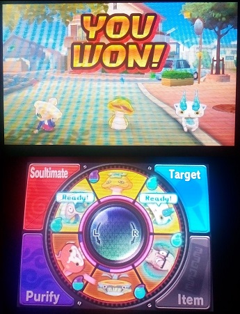 I’m not sure how I feel about this, to be honest. On one hand, the battle system of Yo-Kai Watch involves a lot of activity which makes it feel more intense than a menu-based system. Having the Yo-Kai attack automatically allowed me to focus on rotating the Yo-Kai as needed, as well as monitoring which ones are able to perform their Soultimates. On the other hand, the battle system is very touch heavy so you’ll end up holding your 3DS with one hand quite often (not very comfortable for owners of the heavier 3DS XL versions). I can definitely see how this approach would be more appealing to younger gamers compared to boring menu commands.