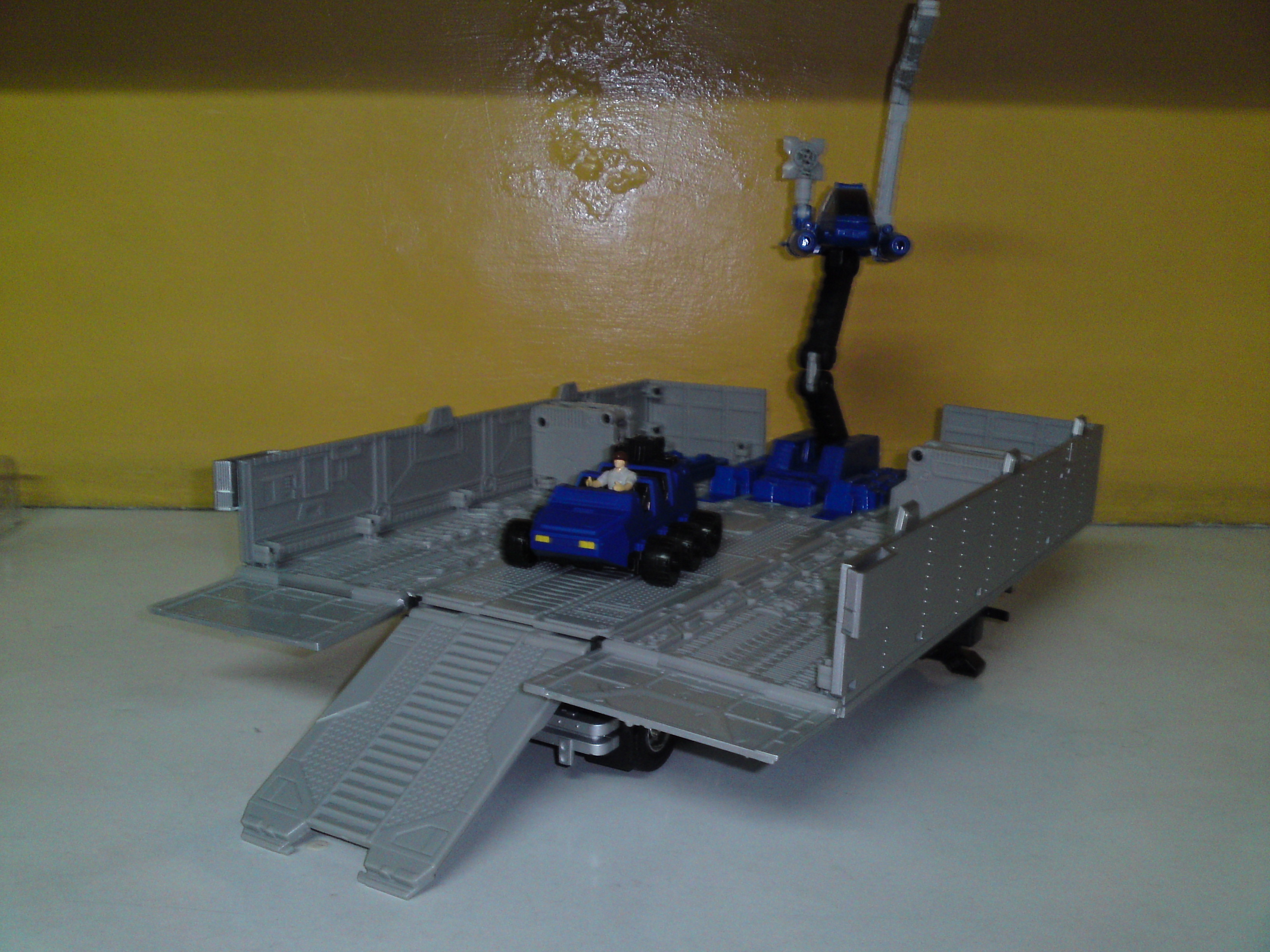 Optimus Prime in vehicle mode is also a thing of beauty as well as, once again, Takara managed to accomplish making also look like he did in the cartoon. He looks beautiful in his truck form and you can’t really see any robotic bits sticking out of him while in this form. I do kinda dislike they had to give him two “grills”; the one you see while he’s in robot mode actually tucks underneath when he’s in vehicle mode while the chamber that hold the Matrix of Leadership folds down and becomes the vehicle mode’s bumper and front grill when in truck mode. Not a big issue but is kind of disappointing that they couldn’t have found a way to use just one grill for both modes.