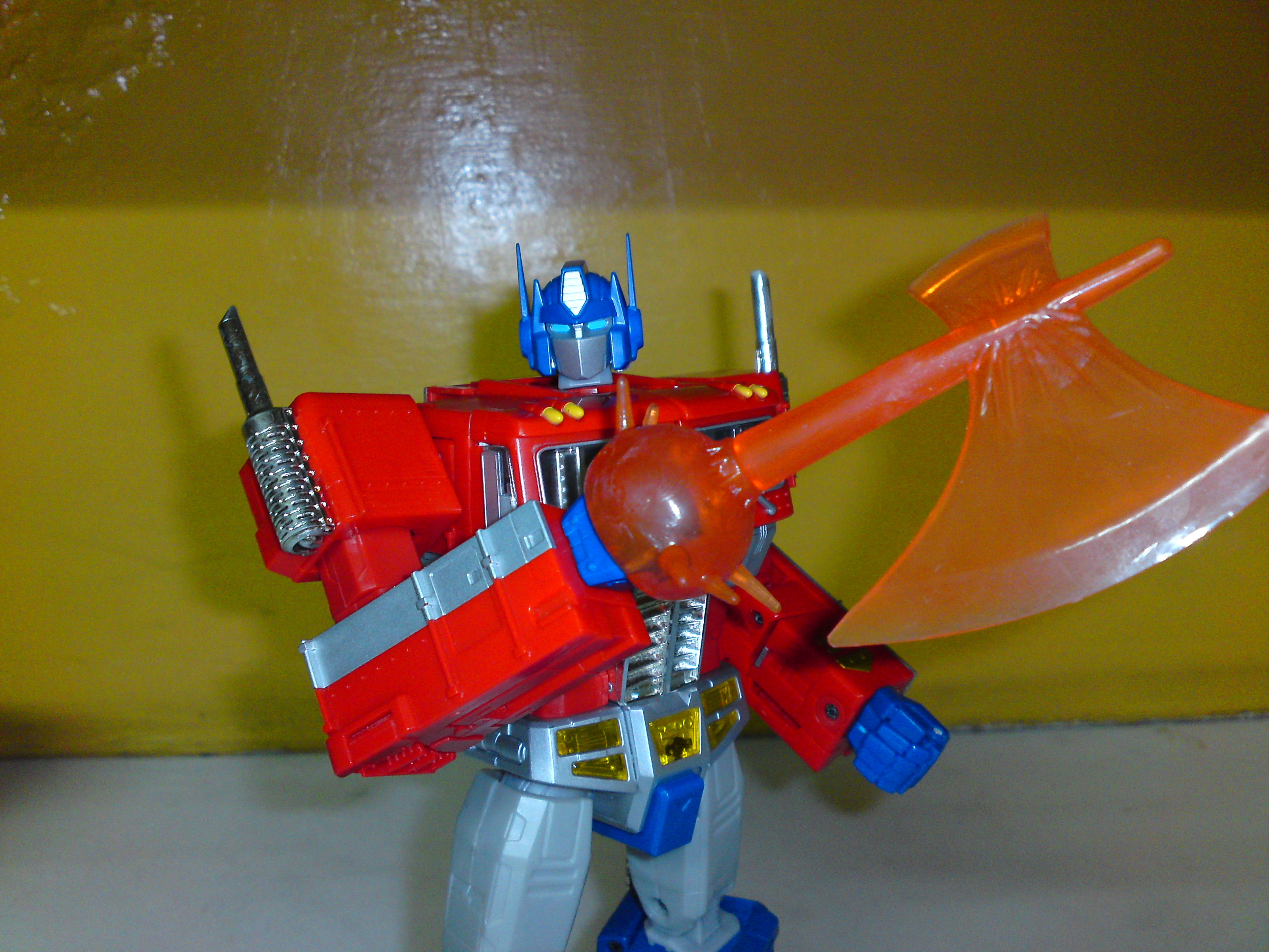 The second accessory I don’t really care that much is the Energy Axe attachment. Although it actually only made one appearance in the cartoon, it was in an iconic scene where Prime unleashed it to battle Megatron, who was brandishing an Energy Flail, atop Hoover Dam. That scene pretty much cemented the Energy Axe into posterity. Too bad it’s a piece of crap! You can’t really fit it into Prime’s hand all that well as it’s too snug a fit!