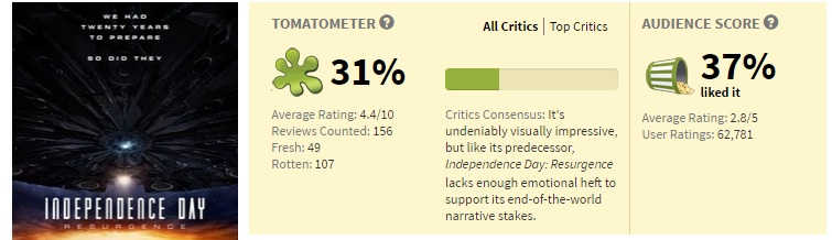 Yes, Hollywood has run out good ideas but that doesn’t seem to be the actual problem. The biggest issue is that Hollywood has become lazy. They want the most profit for the least amount of risk. That means producing and creating more thought provoking films in favor of mindless action. That means not taking a chance on crazy but creative ideas and just going for the tried and true formula of what people expect… a formula that we’re growing tired of. Which is precisely why Independence Day: Resurgence is doing so horribly with critics and audiences alike.