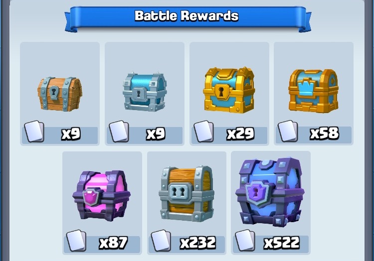 Each chest contains a specific number of cards based on the chest type and the Arena where you got it from. These chests are for Arena 7.