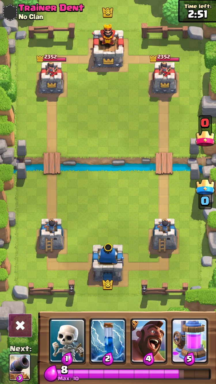 In Clash Royale, you form a deck that consists of eight different cards from the card pool with which you battle other players with. The battles are done in an arena that’s divided into two sides – yours and your opponents. Both players have their own King’s Tower and a pair of Arena Towers and in order to win the battle you must accomplish one of two objectives – to destroy your opponent’s King’s Tower or to destroy more towers than your opponent by the end of the game. Battles last for three minutes but if you and your opponent are currently in a draw (you’ve destroyed the same number of Arena Towers) the game goes into overtime for a minute (or up to three additional minutes if you’re playing a friendly or tournament battle).