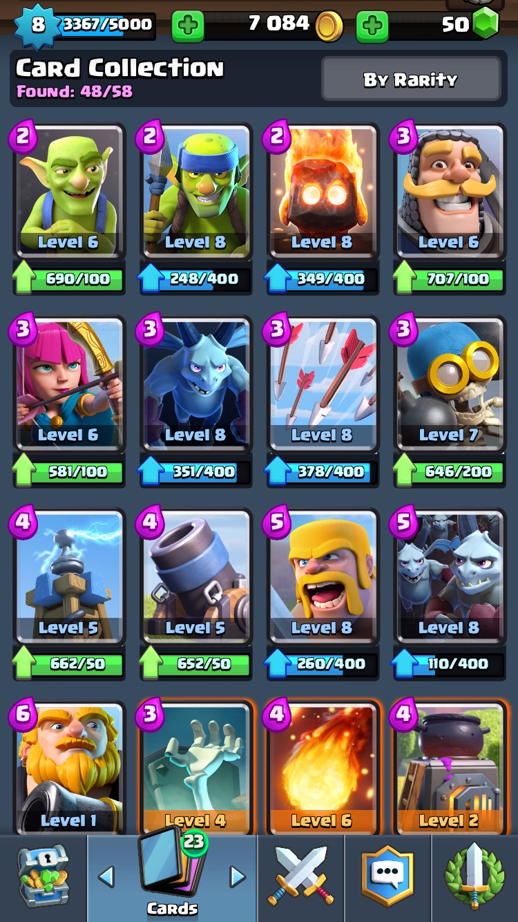 But wait a sec – uprading isn’t as simple as getting duplicates of your cards. Upgrades also cost Gold, one of the in-game resources of Clash Royale. The higher the level that you’re trying to upgrade a card to, the more Gold you’ll be required to spend. You can get Gold through the different chests and by winning battles (up to twenty times daily) but let me be honest – the Gold that you get freely will never be enough to upgrade all the cards in the game. So strategy isn’t limited to battles and deckbuilding – you need to be strategic when it comes to where you spend your Gold as well.