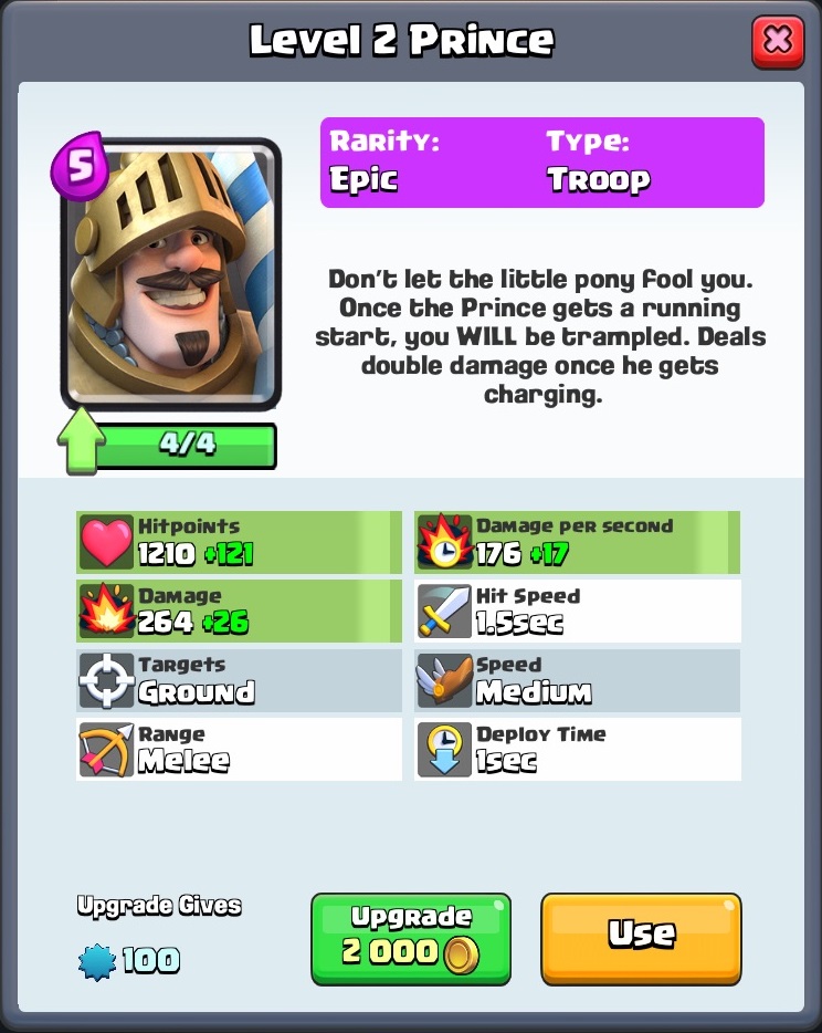 Unlike standard CCGs and card games, both the card pool and the deck size of Clash Royale is very small – you’re bound to end up with lots of duplicates. In order to account for this, Clash Royale follows a card upgrading system wherein multiple copies of a card can be used to upgrade the card to a higher level. This is why being part of a Clan is important – the more you upgrade a card, the more powerful and effective it becomes. Upgrading through Clan requests is much faster than relying on the random cards that you get from chests.