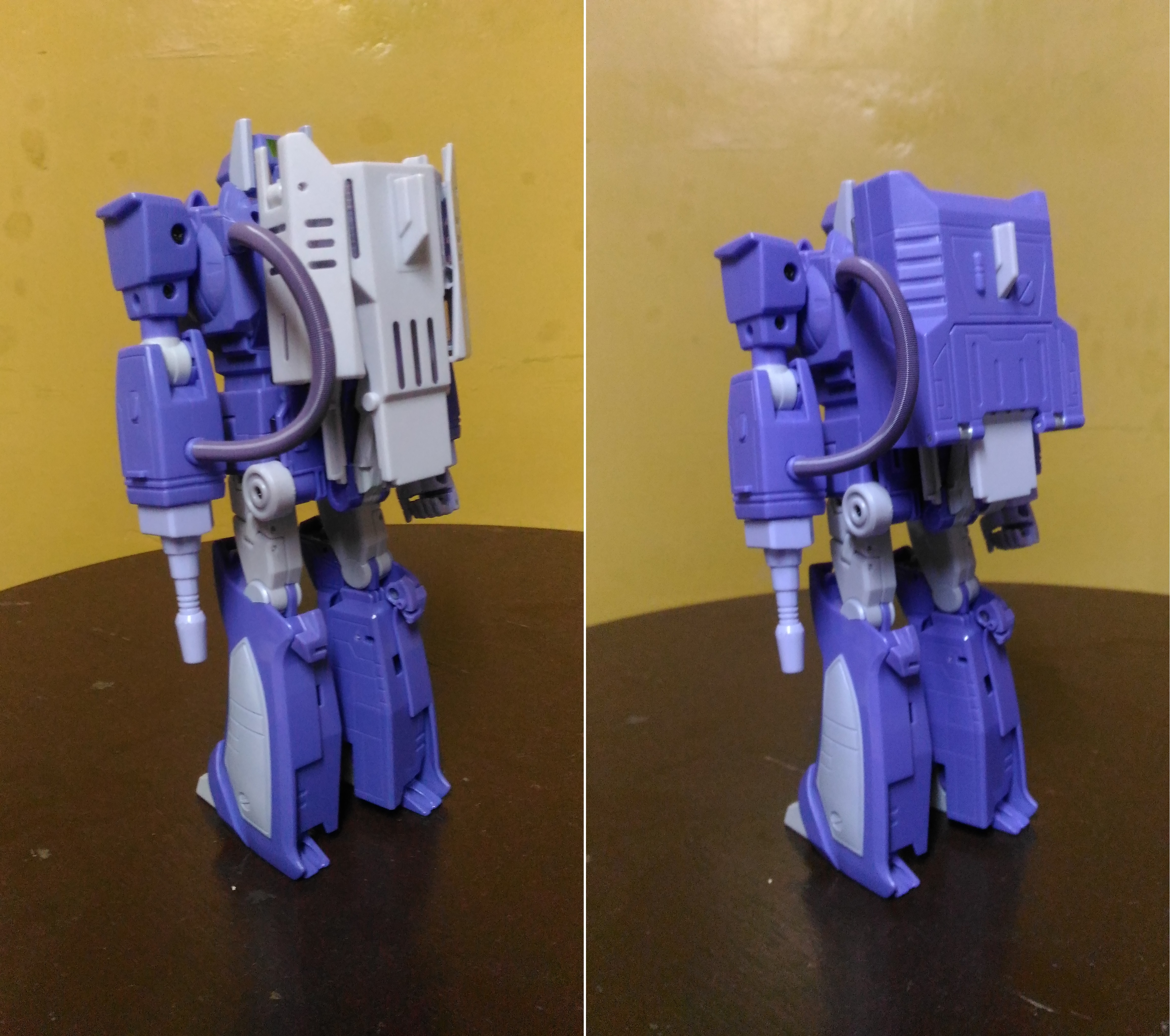 Also, the purple they used seems a shade too light. I know the G1 cartoon has a lot of quality control issues which led to lots of animation issues and colorization problems. But I don’t remember Shockwave’s purple ever looking this… flamboyant. It’s not a huge problem but it does make him look a little more plastic-y than I would like.