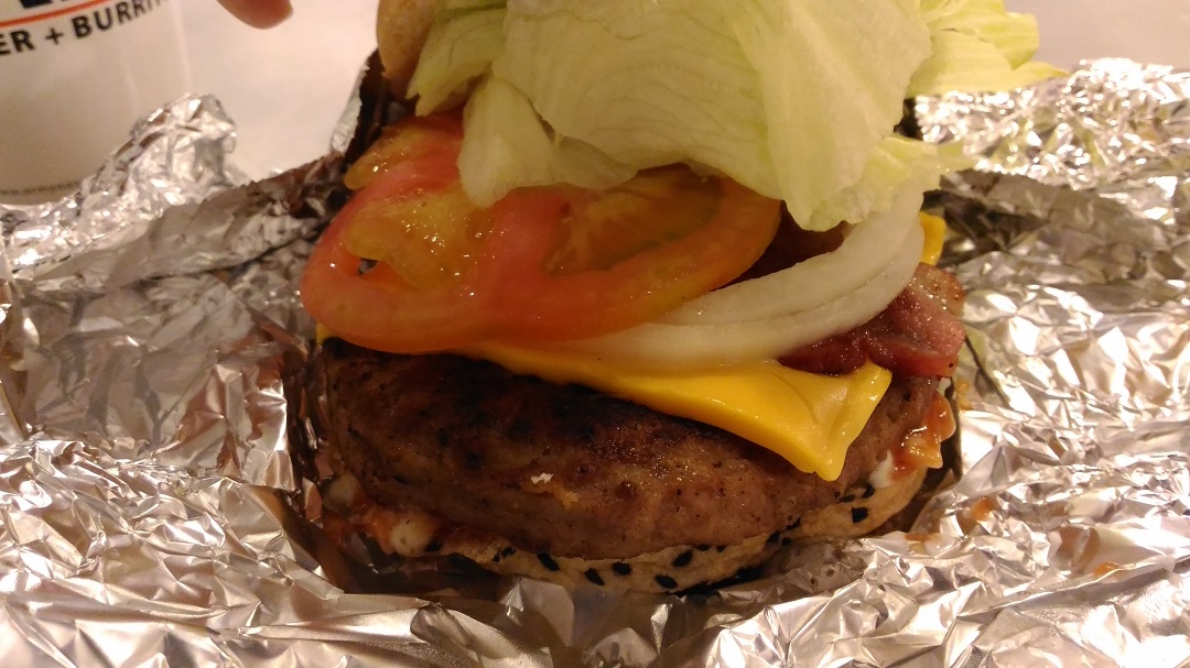 There wasn’t a reason to complain about the lettuce and the tomatoes because they actually tasted really fresh. The lettuce was still crisp and the tomatoes were pretty juicy but still had a good bite to them; they weren’t mushy in the least. Oddly enough, my complaints have to fall on the extras I ordered. The cheese wasn’t quite melted to a gooey consistency but that’s a minor quibble. My main issue had to be with the bacon. While the bacon strips were crispy, they also had a very chewy consistency. It was almost like chewing on beef jerky. It had the flavor of bacon, at least.