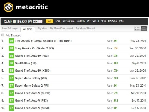 The Legend of Zelda: Ocarina of Time remains to be Metacritic’s highest rated video game of all time.
