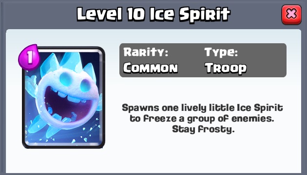 The Ice Spirit serves a similar purpose in that it is an additional help on defense. Rather than providing multiple targets, its freezing ability helps preserve my defenses by preventing attacks while allowing my troops/towers to land more hits. They’re also great counters to Minions and combined with Zap, can take out entire Minion Hordes for positive elixir trades.
