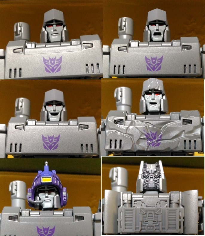 Takara has once again gone to town with the number of accessories with their latest figure and, I will say, this version of Masterpiece Megatron has probably the best ones yet! The most prominent has definitely have to be the number of extra faces he comes with. They all look really well made and don’t look out of place on him. His standard frowny face that he’s wearing out of the box is good but I just love the other two, the grinning one and the one where he’s yelling, look so much better! If you’re so inclined, you can also switch it out with a “battle damaged” face and chestplate so you can relive the traumatic time when both he and Optimus Prime duked it out to the death in the original Transformers: The Movie. You can also relive the “reformatting” scene where Unicron transformed Megatron into Galvatron by removing all his face places. Nice touch, Takara!