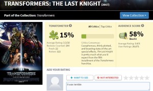 I just came back from watching Transformers: The Last Knight and it was an experience, I’ll tell you that! The movie was terrible on so many levels. The story was a trainwreck of story elements that just didn’t make sense. The action, although over the top to the nth degree, just failed to excite me because I’ve seen it all happen in the other Michael Bay Transformers movies before. There are characters that are in it that don’t do anything.