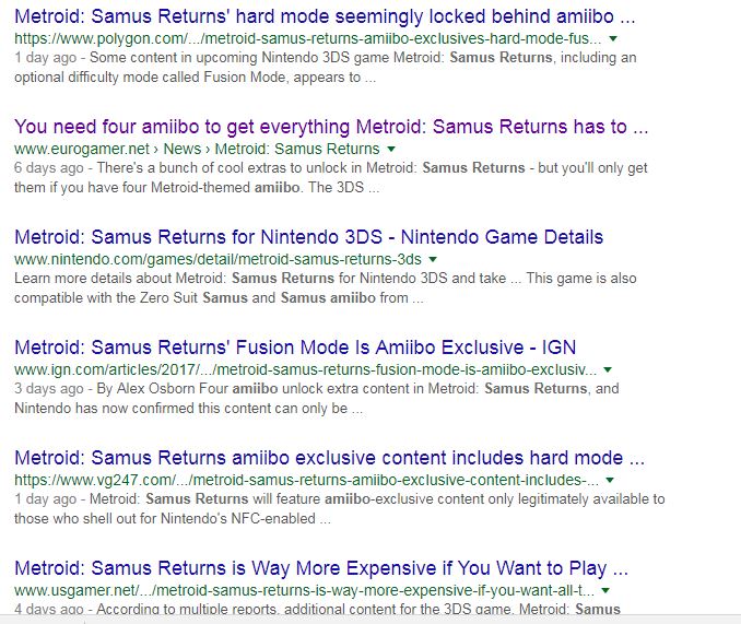 These are tough problems. As it is currently, I can see why some Metroid fans are pissed; not being able to play an entire mode of gameplay in Metroid: Samus Returns is definitely a bummer. The game is scheduled for release this coming September; I’m not sure if Nintendo still has time to change how the Metroid amiibo will work with it. Looking to the future though, if Nintendo continues to make the same mistake, locking too many wanted/needed features of a game behind amiibo, this may result in fans souring on these figurines. I’ve got some ideas and recommendations for amiibo moving forward that may resolve these problems – stay tuned for these next week.