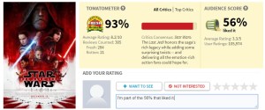 Fear leads to anger. Anger leads to hate. Hate leads to The Last Jedi? Although critics love the latest Episode VIII, with some of them proclaiming that this is the best film in the series since The Empire Strikes Back, the more hardcore fans are divided about it. Me? I personally enjoyed it a lot and I was rather shocked that there are a lot of Star Wars fanatics that hate it, making it actually the most reviled film in the franchise. Seriously! Episode II: Attack of the Clones had an audience rating of 57% on Rotten Tomatoes and, as of this writing, The Last Jedi is at 56%! Heck, it may have dropped a few percentage points as I’m writing this right now!