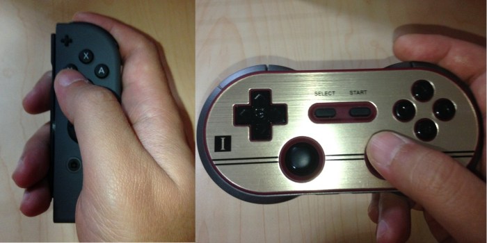 The right analog stick of the JoyCon is too low for me to be used extensively. 8bitdo F30 controller shown for comparison.