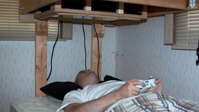 It’s just not as comfortable as lying on your back. Although I can admit, with a proper wall mount set up you can even achieve something like this with a PS4 or Xbox one: