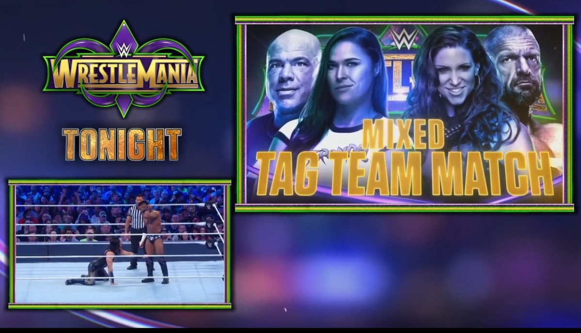 Ronda Rousey promo during Cruiserweight Match Published April 9, 2018 at 1269 × 727 in Episode 250: The Good, The Bad and The Ugly of Wrestlemania 34’s Kickoff Show ← Previous When the heck is a promo video more important than a live match?