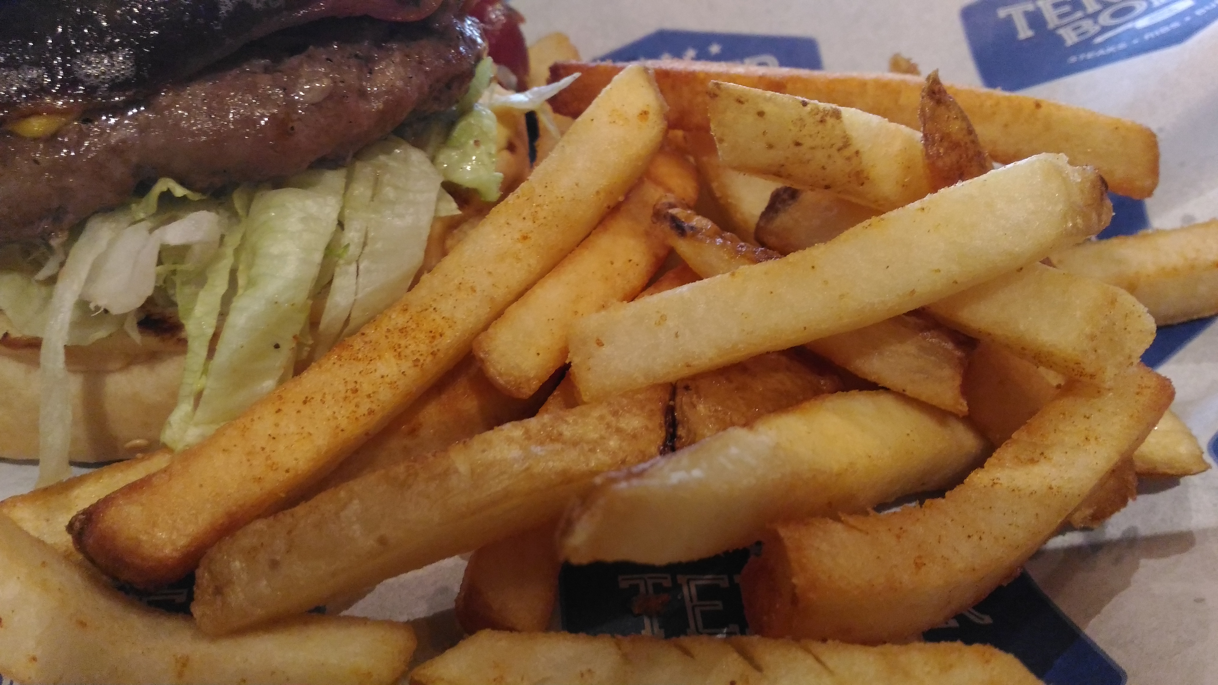 Tender Bob’s Fully Loaded burger isn’t perfect, however. The menu description said that it’s supposed to have mushrooms in the burger but, for the life of me, I couldn’t really find any. I’m assuming the mushrooms are there but I didn’t want to go rooting in the burger as I was afraid it would fall apart if I took it apart. The grilled onions weren’t, well, they weren’t grilled enough as the while onions had a rather strong and overpowering flavor to them. My suspicions that the onions were a little too strong were confirmed when, around getting halfway through eating the Fully Loaded burger, I began to eat it as a whole instead of in pieces. Sure enough, there was definitely a strong onion aftertaste with each and every bite. Its’ nothing bad, mind you, but it is kind of distracting since everything else compliments each other nicely.