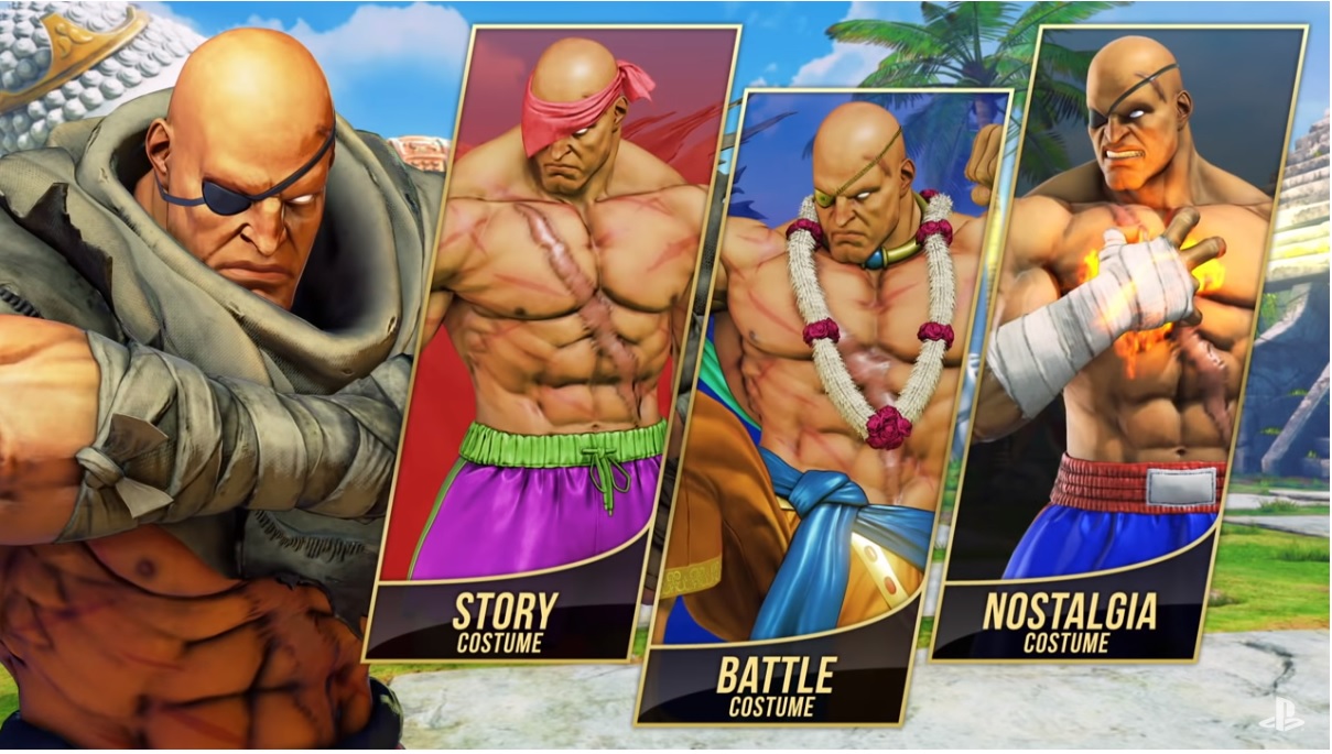 Sagat Costumes Published August 15, 2018 at 1209 × 685 in I’ll Review Anything: Sagat (Street Fighter V DLC Character) ← Previous And they gave him purple shorts with green trim? EWW!