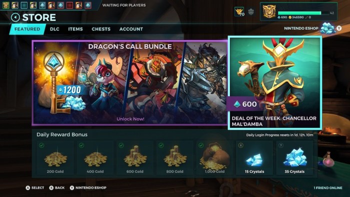 Anyone who is already playing Paladins may call me out and say that this is barely enough to buy Champions, which come in three different price points: 15,000 Gold/100 Crystals, 30,000 Gold/200 Crystals, and 60,000 Gold/300 Crystals. You’d need to log in for 5 weeks to buy the cheapest Champions using your Gold earnings, or 2 weeks if you want to go Crystal.