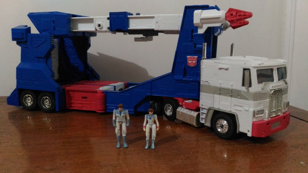 I guess it would’ve been too much to ask for the truck portion to transform into an Optimus Prime figure as that was one of the main features of the G1 toy. However, what would’ve been not too much to ask for would be to put a couple of extendable stands on the trailer! When you do detach the truck from the trailer, the latter just flops onto the floor! I can’t see why Takara couldn’t have had some tab flip downward from the waist portion to make a leg for the trailer to remain stable without the truck.