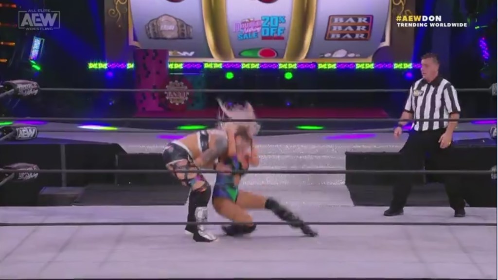 The next match pitted Kris Statlander against Penelope Ford, who was replacing the injured Dr. Britt Baker. This was the worst match of the night, which is a shame. I really like Penelope Ford and I think she’s one of the most underutilized talents in AEW’s roster. She’s got a good look and her wrestling acumen is, at least, above average. I also think Kris Statlander is the same way. However, everything was just sloppy from bell to bell. The standout blah moment for me was the dodging bridge into a stunner by Ford to Statlander. That stunner looked really awkward and had totally no impact!