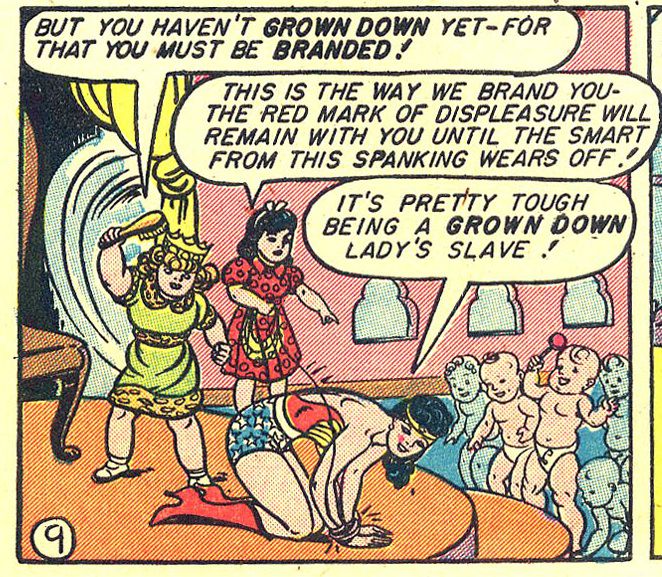 While it’s usually demonized to show Wonder Woman’s creator, William Moulton Marston, having a bondage fetish (which is, by all accounts, true), it does go a little bit deeper than just showing kinky stuff. Because Wonder Woman is never rescued and always has to find a way to liberate herself from bondage, it’s also supposed to illustrate how women have the power to escape their own figurative subservience to men. And you thought it was just there to titillate young boys…