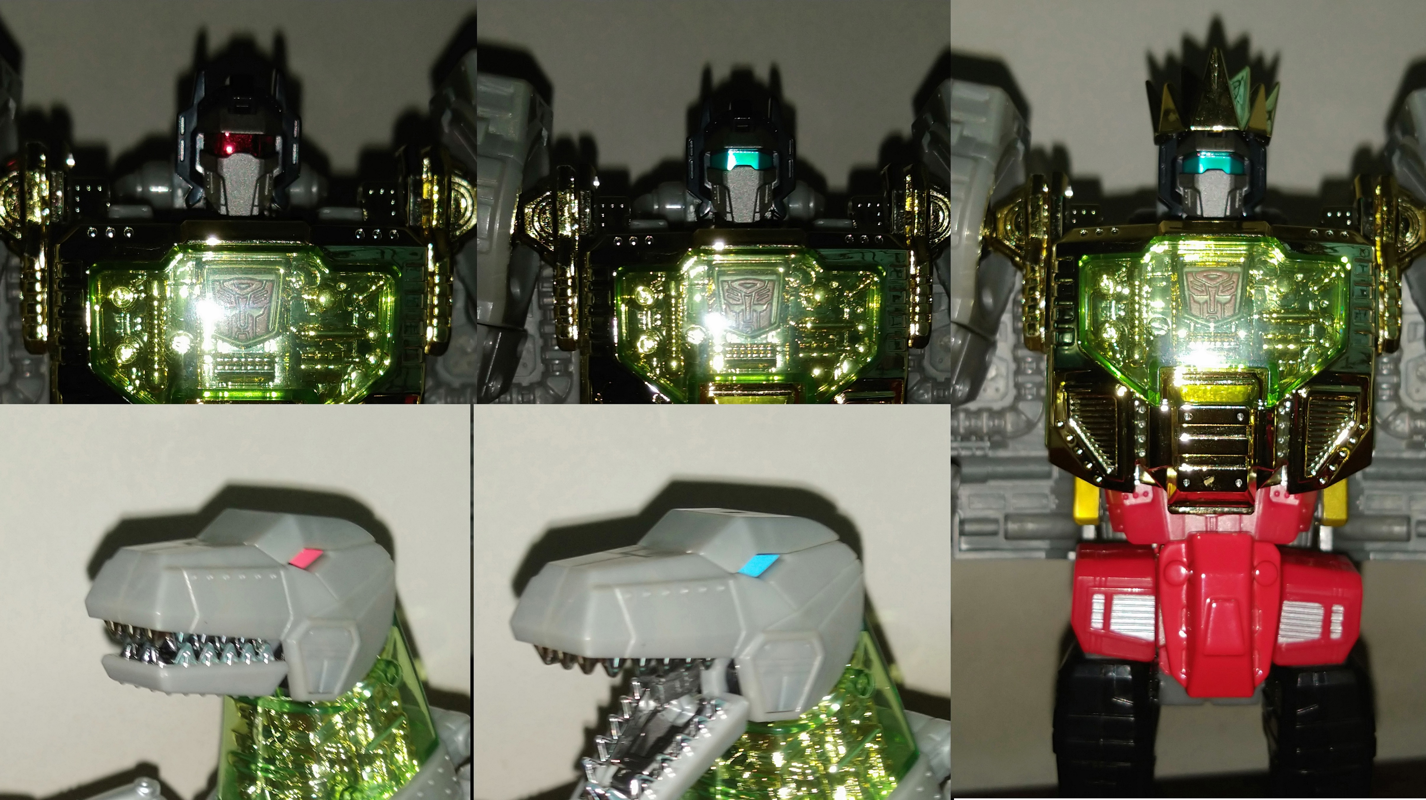 Speaking of noggins, Masterpiece Grimlock does have a neat feature that allows you to swap out his visor or eyes with either a red or blue tint for both his robot and Tyrannosaurus Rex form. And they’re all built into the figure! For his robot mode, you just have to move a lever found on the back of his head to switch between both of them. When in his alternate mode, you have to flip open the top of his dinosaur head and twist the eyes around then close the head again. It’s neat as you don’t have to dig into the box to make Masterpiece Grimlock toy or cartoon accurate!