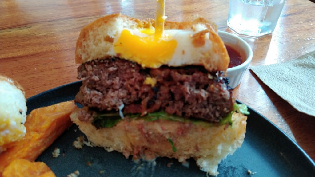 When it came to presentations, I will say the Kandle Burger does look really good. Even without the fancy egg in the bun, the burger itself looked rather substantial. Sure, the one I got was leaning to the side a little but who really care if it can stand up straight? I’m not a huge fan of sweet potato fries but these looked alright in my book.