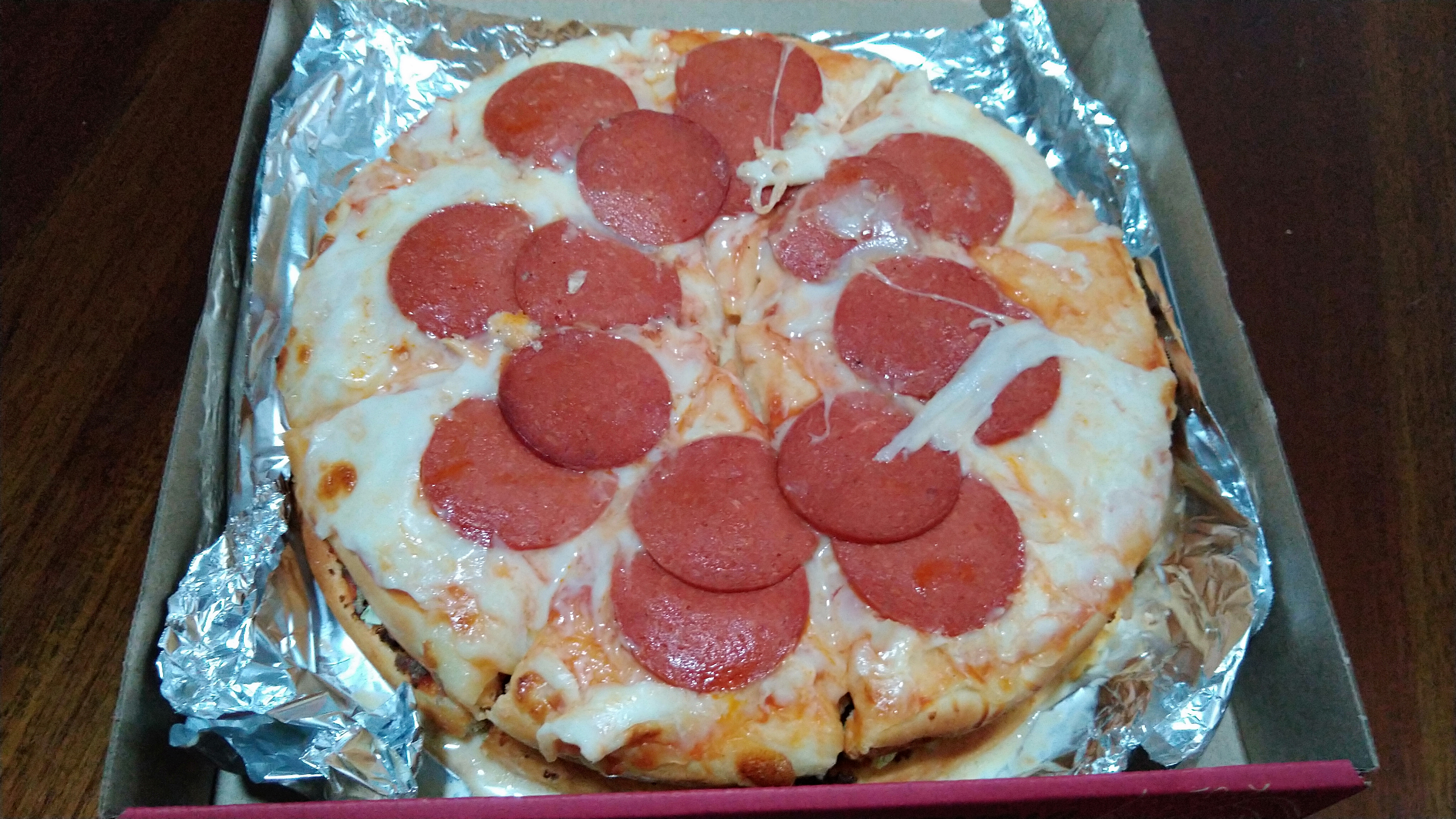 Almost immediately, I cut out the plain crust and Mozzarella because they don’t have that “pizza” feel. The Overload and Beef with Mushroom were also excised as having all those toppings while also having to contend with a burger patty seems like overkill. I also opted not to get the Hawaiian because, while I’m okay with pineapple on my pizza and my burgers (see my Amazing Aloha Champ review), I didn’t want it to color my review of my first time trying out something from this place. So, I decided to get something rather generic but the most “pizza” thing on the menu: The Pepperoni Pizza Burger.
